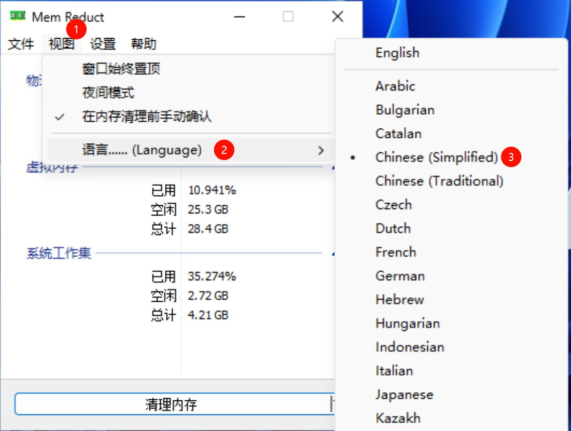 在试用了众多内存清理工具后,我最终锁定Mem Reduct,是因为它完美符合我们工程师的需求: